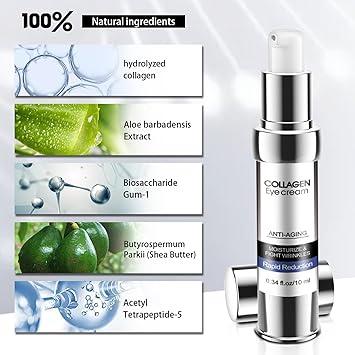 - 【Collagen Eye Cream】- Collagen promotes the regeneration of skin cells, anti aging seaweed polysaccharides greatly promotes the growth of skin collagen, effectively restores skin elasticity and firmness. our skincare ingredients work day and night to visibly reduce fine lines