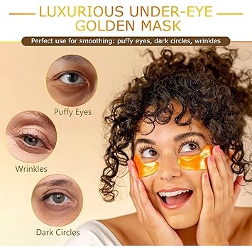 - Effective Solution for Dark Circles & Puffiness: This gold eye mask helps to smooth the skin and minimize dark circles. Specifically for dark circles and puffy eyes, our gold eye patch contains rich nutrients to reduce dark circles, lighten wrinkles, moisturize the skin, say goodbye to eye fatigue, and reverse the condition of the skin, bringing you a brand-new experience for your eye area.