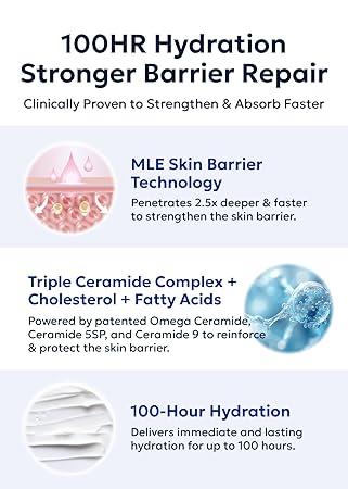 - PATENTED SKIN BARRIER TECH: MLE technology with Omega Ceramide mimics natural skin lipids, restoring the protective barrier for deep, long-lasting hydration. Ideal face moisturizer for dry skin, it revitalizes moisture and strengthens skin’s defense.