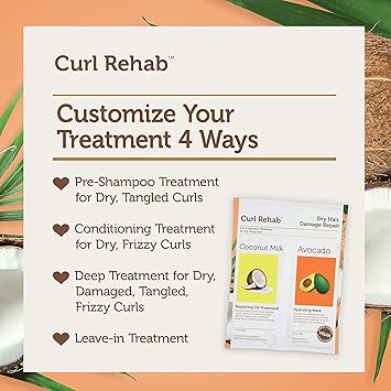 - YOUR CURL INTERVENTION - Keep your curls vibrant with this dual 2-in-1 treatment that uses the conditioning and hydrating benefits of coconut milk & avocado to moisturize dehydrated, damaged curls. Made with vegan ingredients, use the treatment that's right for you.