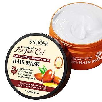 For SADOER Argan Oil Hair Mask,Smooth Slip Fluffy Hairstyle,Moisturizing and soothing Care Masks,nourishes hair,leaving it strong shiny 250g 8.8 FL OZ
