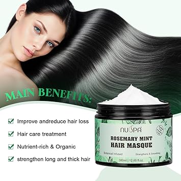 - 4.Suit for All Hair Types: Our Nuspa Rosemary Mint Hair Mask Repair and Moisturizing the Dry Damaged Frizzy Hair , Anti Hair Loss and Strengthen the Hair Shine and Radiant for Women ,Men a-c type hair.
