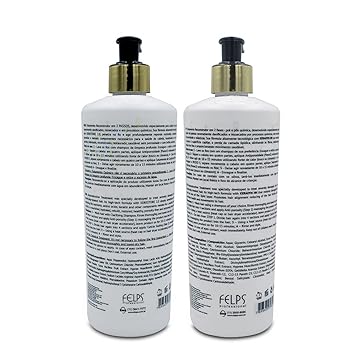 Felps Rp Innovative Hair Treatment 2x500ml FELPS COLOR RECONSTRUCTION PREMIUM ANTIPOROSITY: 2-STEP Reconstruction Treatment, specially developed to care for severely damaged, dry hair and those undergoing chemical processes. Its highly technological formula with KERESTORE 2.0, penetrates the hair strand and acts deeply to replace nutrients, amino acids, keratin and other components necessary for hair health, resulting in nourished, hydrated, rebuilt, restored, healthy hair without porosity and with extreme shine. FELPS COLOR RECONSTRUCTION PREMIUM CUTICLE SEALING: 2-STEP Reconstruction Treatment, specially developed to care for severely damaged, dry hair and those undergoing chemical processes. Its highly technological formula with KERADYN HH, penetrates the hair strand and acts deeply to replace nutrients, amino acids, keratin and other components necessary for hair health, resulting in nourished, hydrated, rebuilt, restored, healthy hair without porosity and with extreme shine. How to Use: 1 - Wash your hair with deep cleansing shampoo. Rinse and remove excess water; 2 - Separate the hair into four parts, apply Antiporosity (Step 1) covering the strands; 3 - Leave to act for 10 to 15 minutes using a heat source (cap or climazon); 4 - Without rinsing STEP 1, separate the hair again into four parts and apply Cuticle Sealing (Step 2) covering the strands; 5 - Leave to act again for 10 to 15 minutes using a heat source (cap or climazon) 6 - Rinse and finish. * During the Chemical Treatment, the first procedure is not necessary: 1 - Wash the hair with deep cleaning shampoo. Rinse and remove excess water. It is recommended to apply the product using gloves. In case of contact with eyes, wash them immediately with plenty of water. Keep in a cool place and out of reach of children.