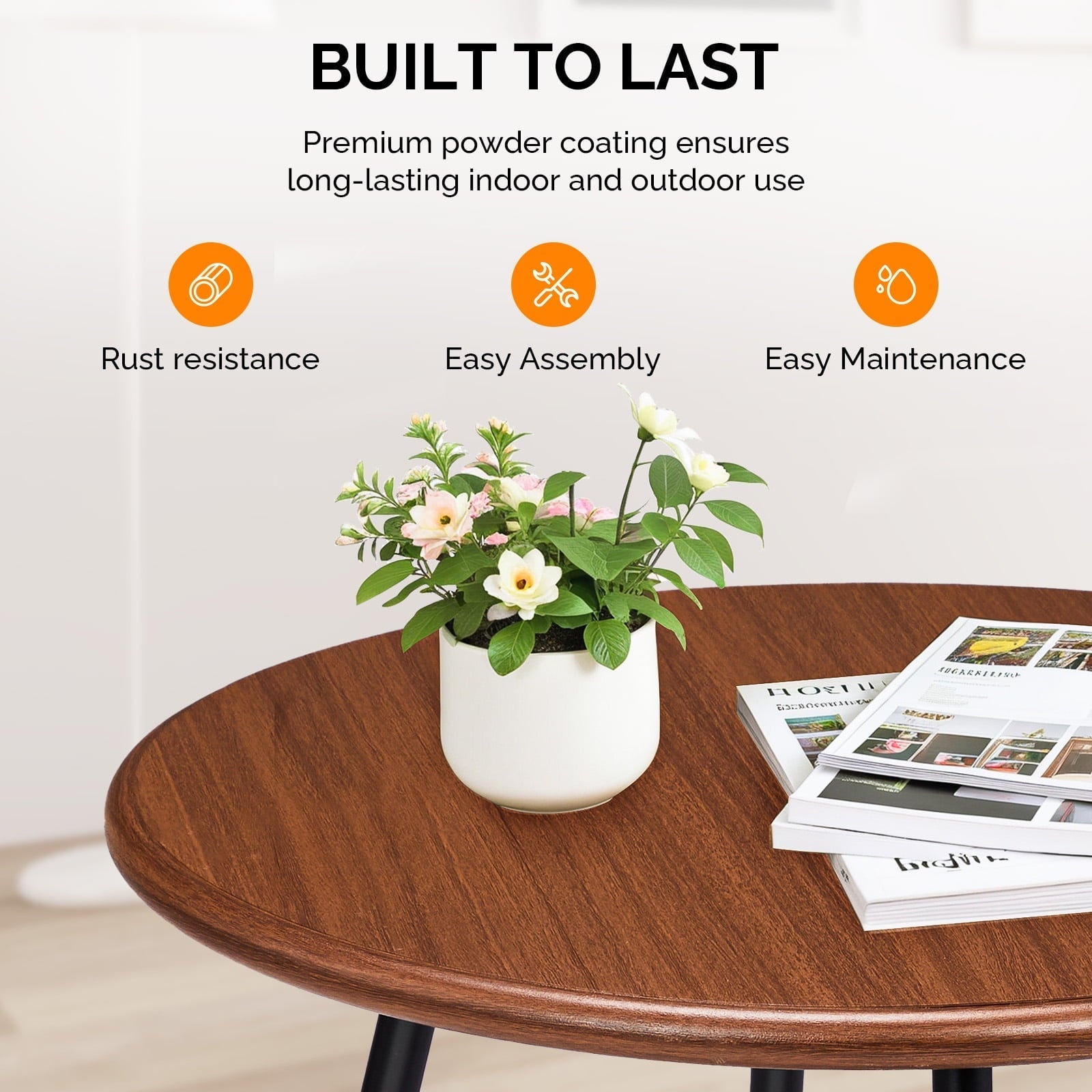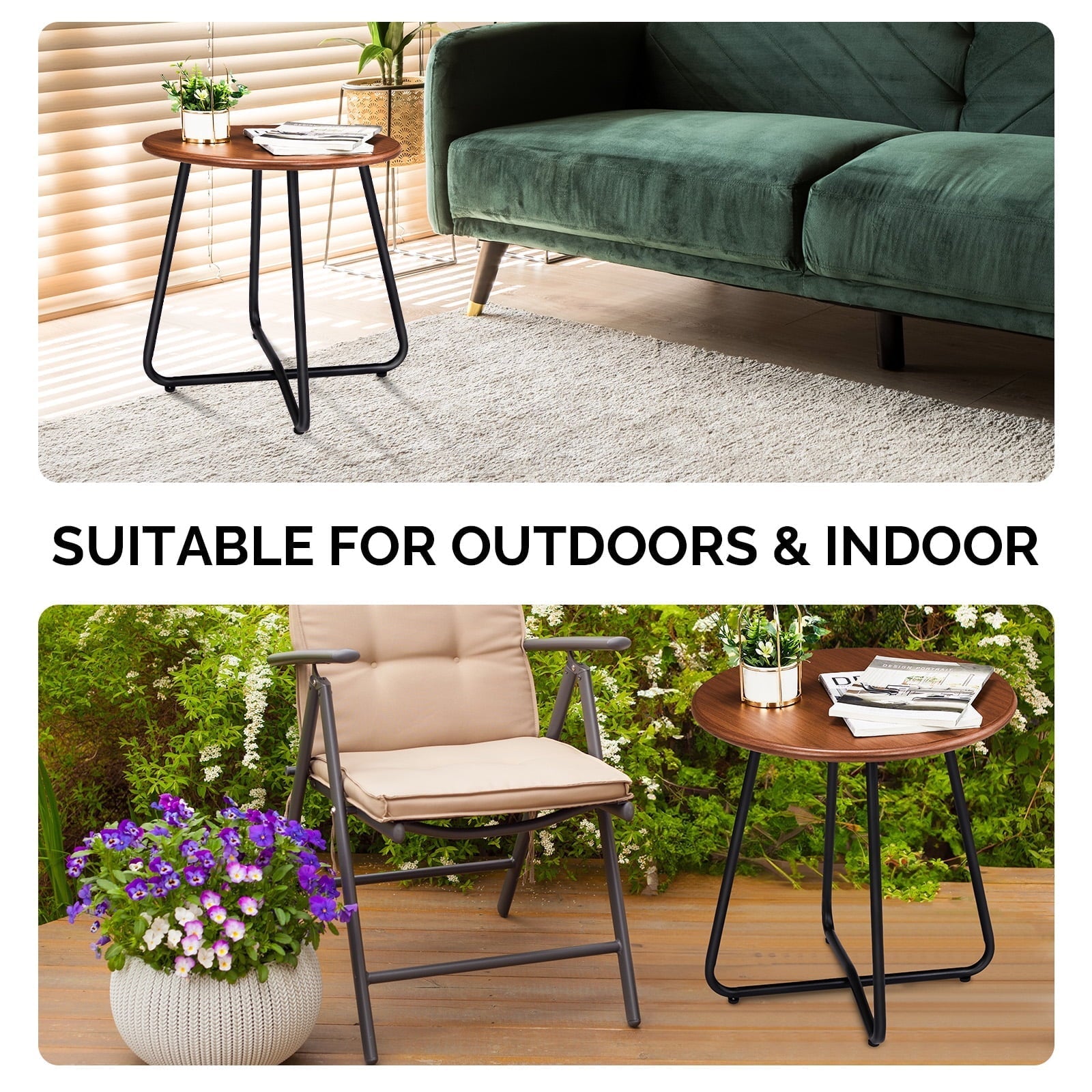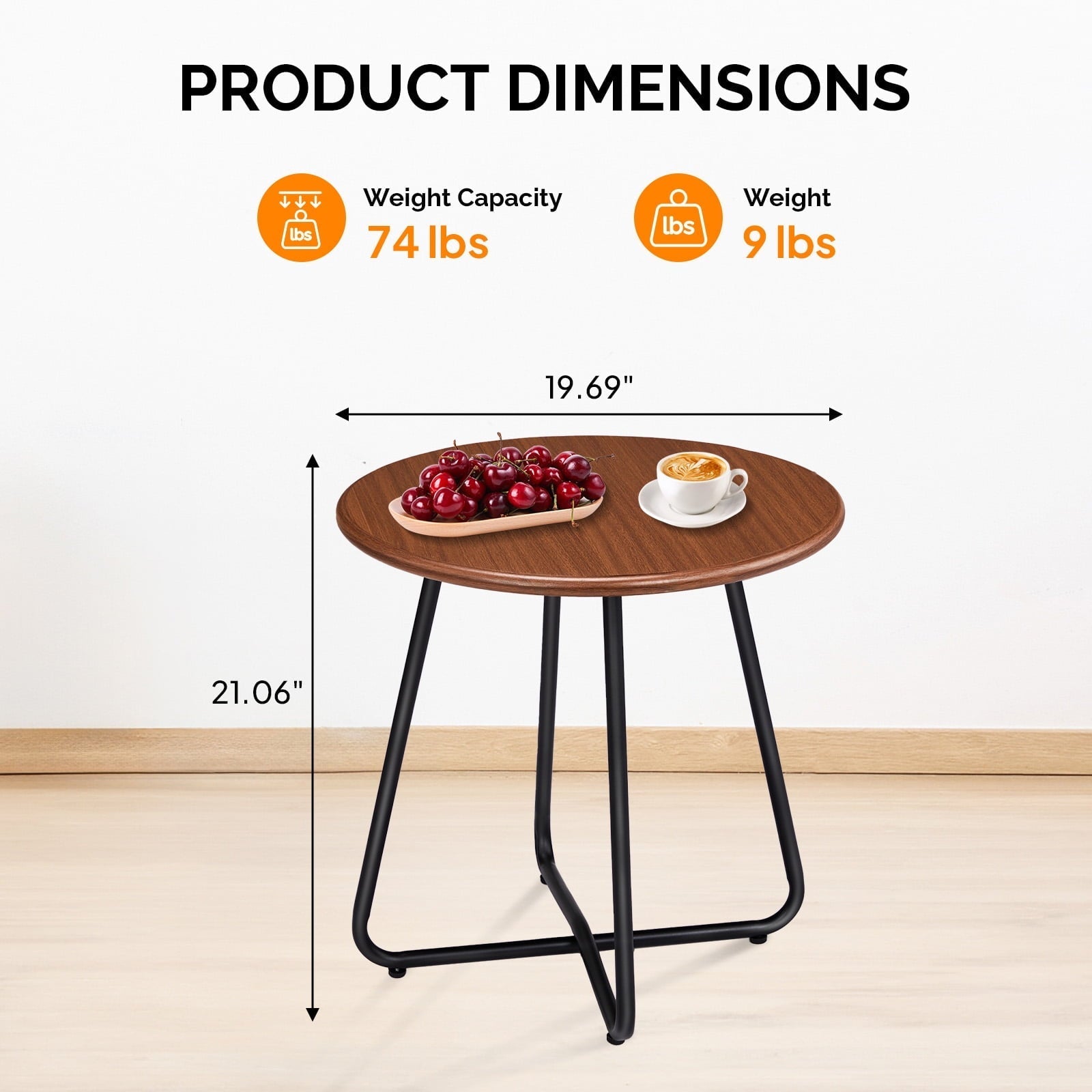 Xilee Outdoor Side Table with Imitation Wood Tabletop,19 Inch Round Table, Anti-Rust Waterpoof Metal Small Dining Table for Patio, Outside, Camping, Balcony