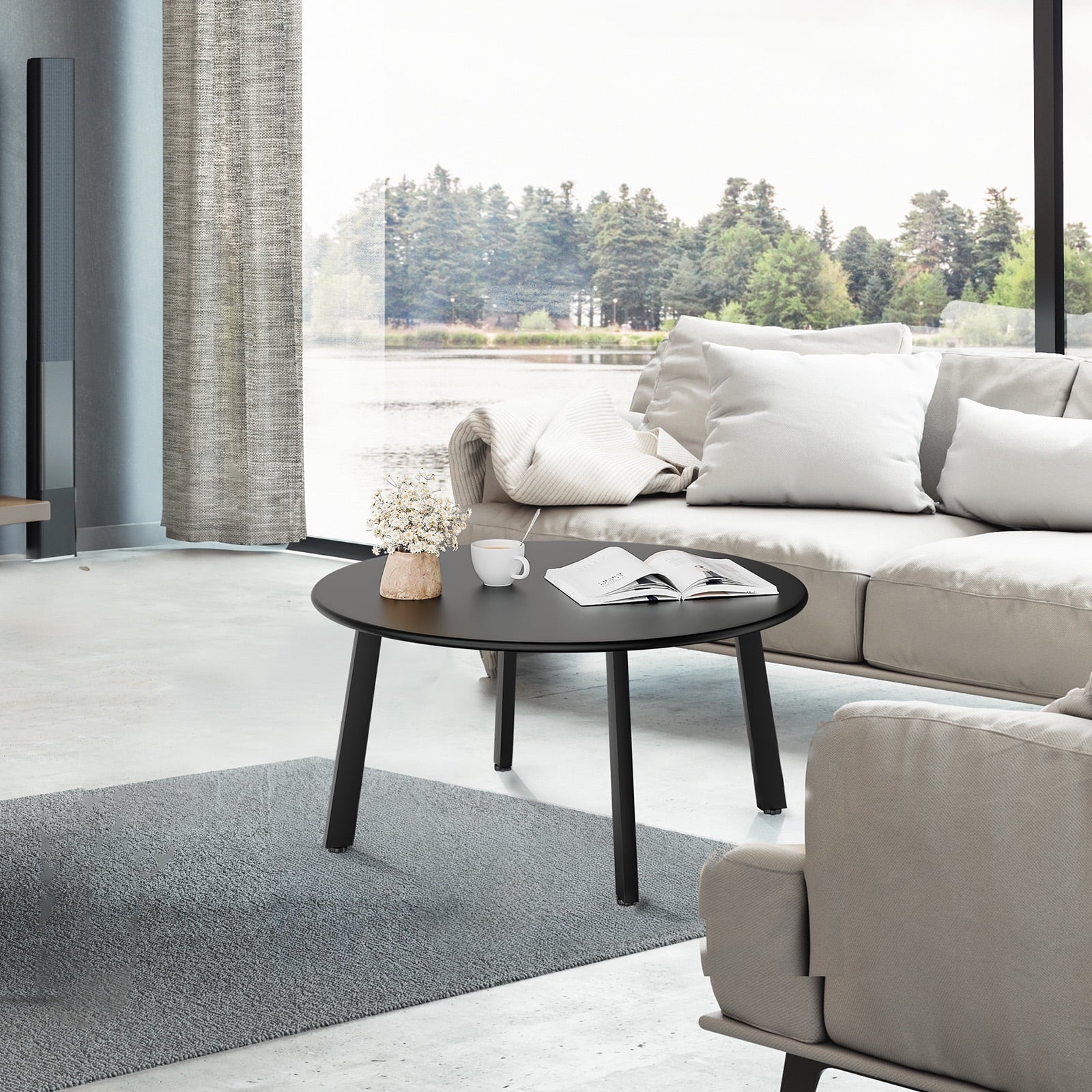 This Patio Coffee Table brings a touch of modern elegance and functionality to your outdoor space. With its minimalist design and sturdy steel construction, this round table is perfect for any patio, yard, or balcony. Whether you're enjoying a quiet morning with a cup of coffee or hosting friends for an outdoor gathering, this table provides a reliable and stylish surface. Crafted from durable, weather-resistant materials, it is designed to withstand the elements and remain a functional piece of furniture for years to come.