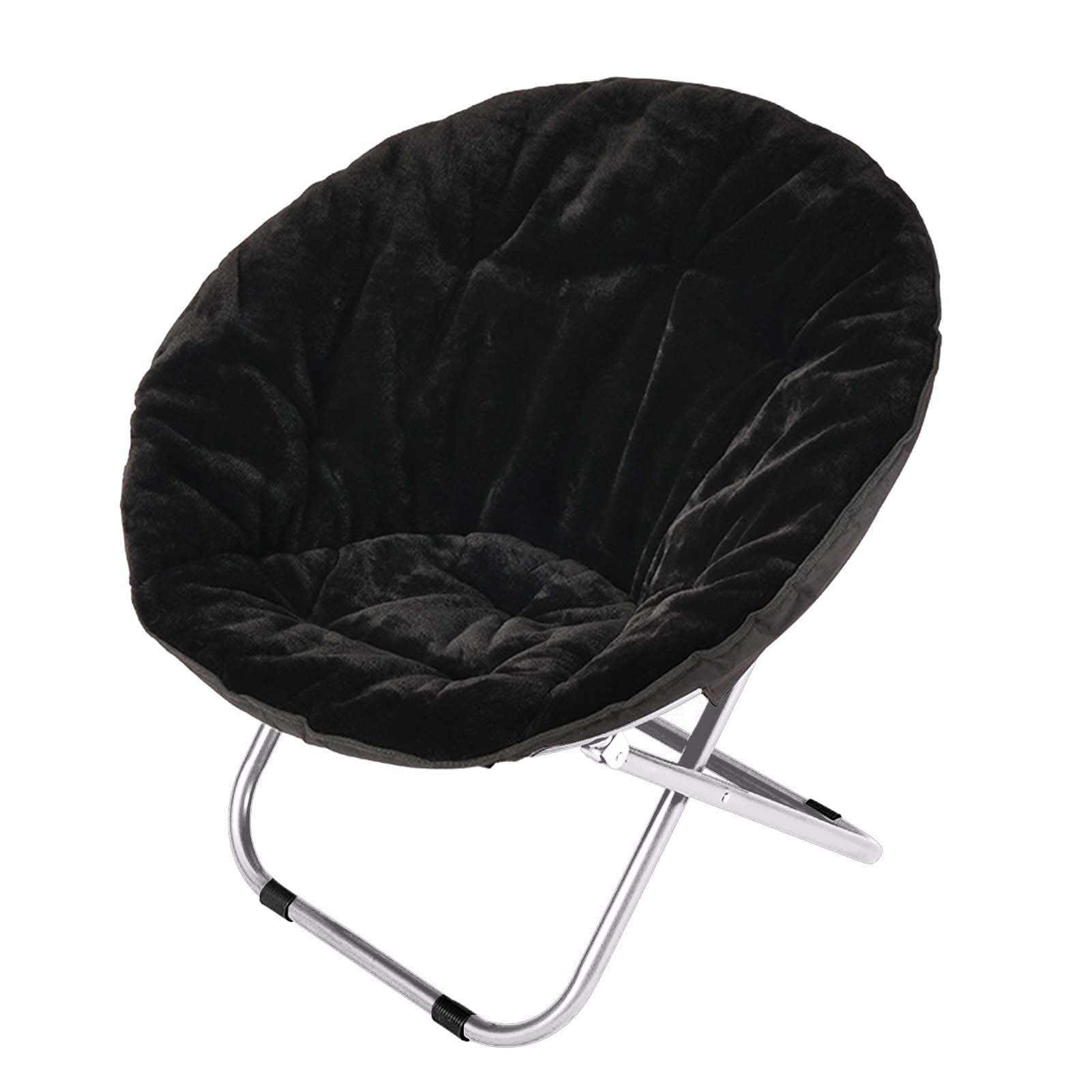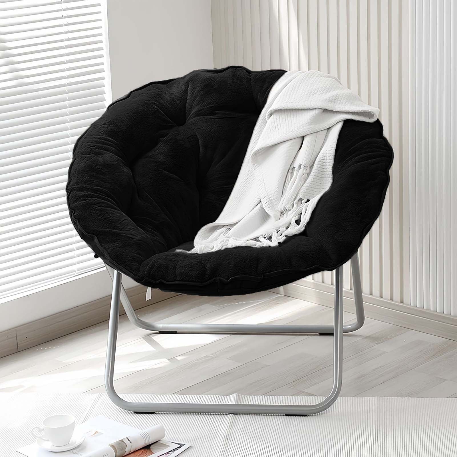 Xssm Folding Chair for Adults Portable Outdoor Lawn Chairs Saucer Chair with Metal Frame Soft Cushion Quiet Seat Enhanced Stability Bedroom Living Rorm Apartments Lounging Courtyard Moon Chair