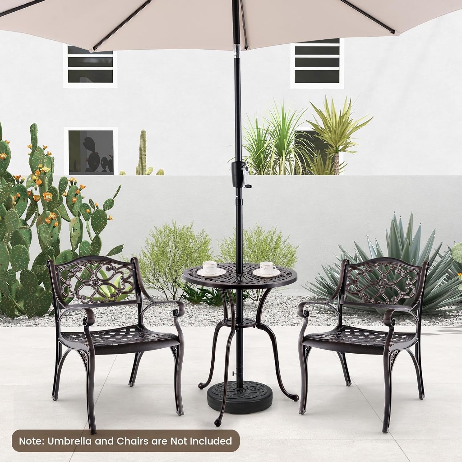 ZDOOR 24” Patio Bistro Table, Cast Aluminum Outdoor Side Table with 2" Umbrella Hole, All-Weather Resistant Round Patio Dining Table for 2 for Front Porch, Pool, Backyard, Garden, Balcony
