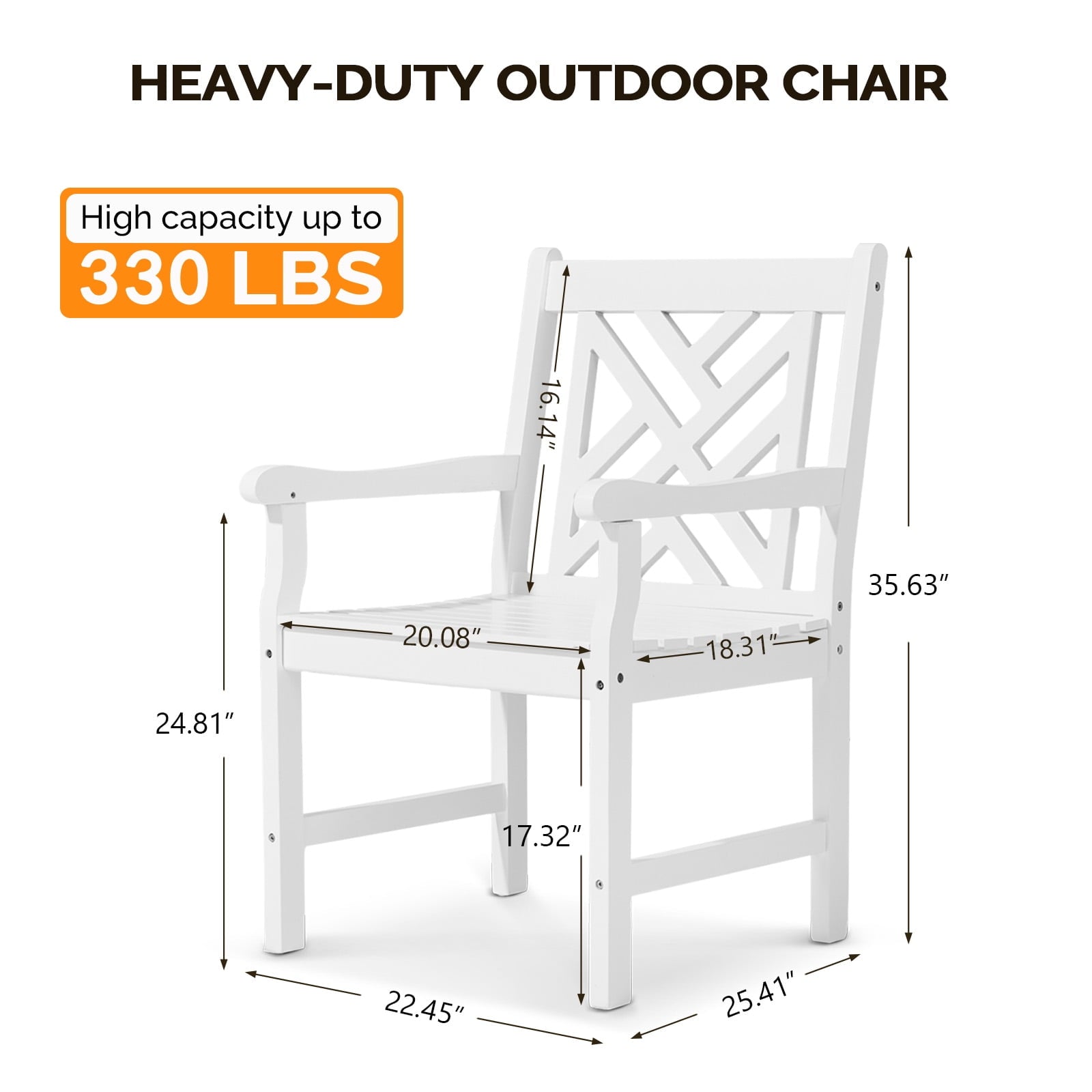 Zimtown 1Pc Patio Dining Chair, Heavy Duty Wood Armchair, Bistro Seating with Slatted Seat ,Outdoor Dining Seating for Indoor Outdoor Balcony Porch Garden, White