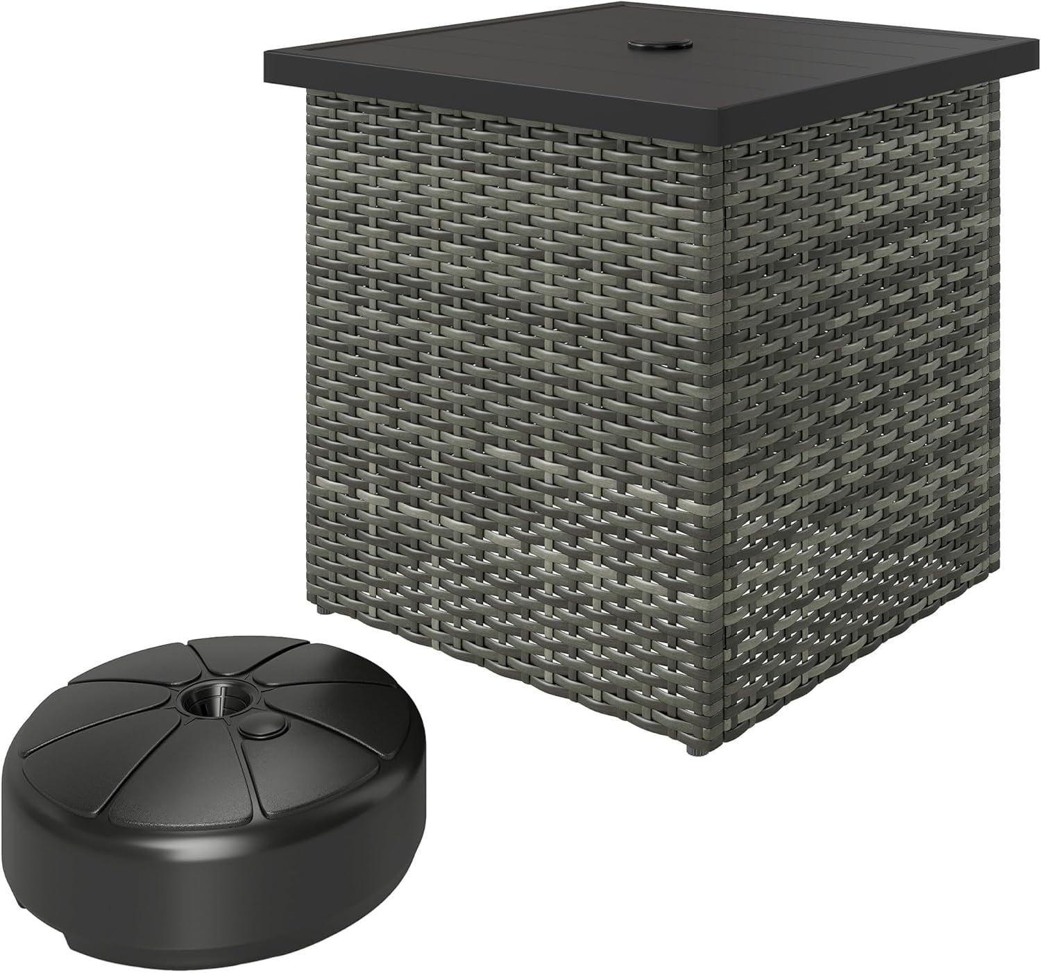 ZOPan All Weather Wicker Side Table with 1.5" Umbrella Hole, Square PE Rattan Outdoor End Table with Umbrella Base, UV-Resistant Frame, Storage Space for Patio, Garden, Poolside, Deck, Mixed-Gray